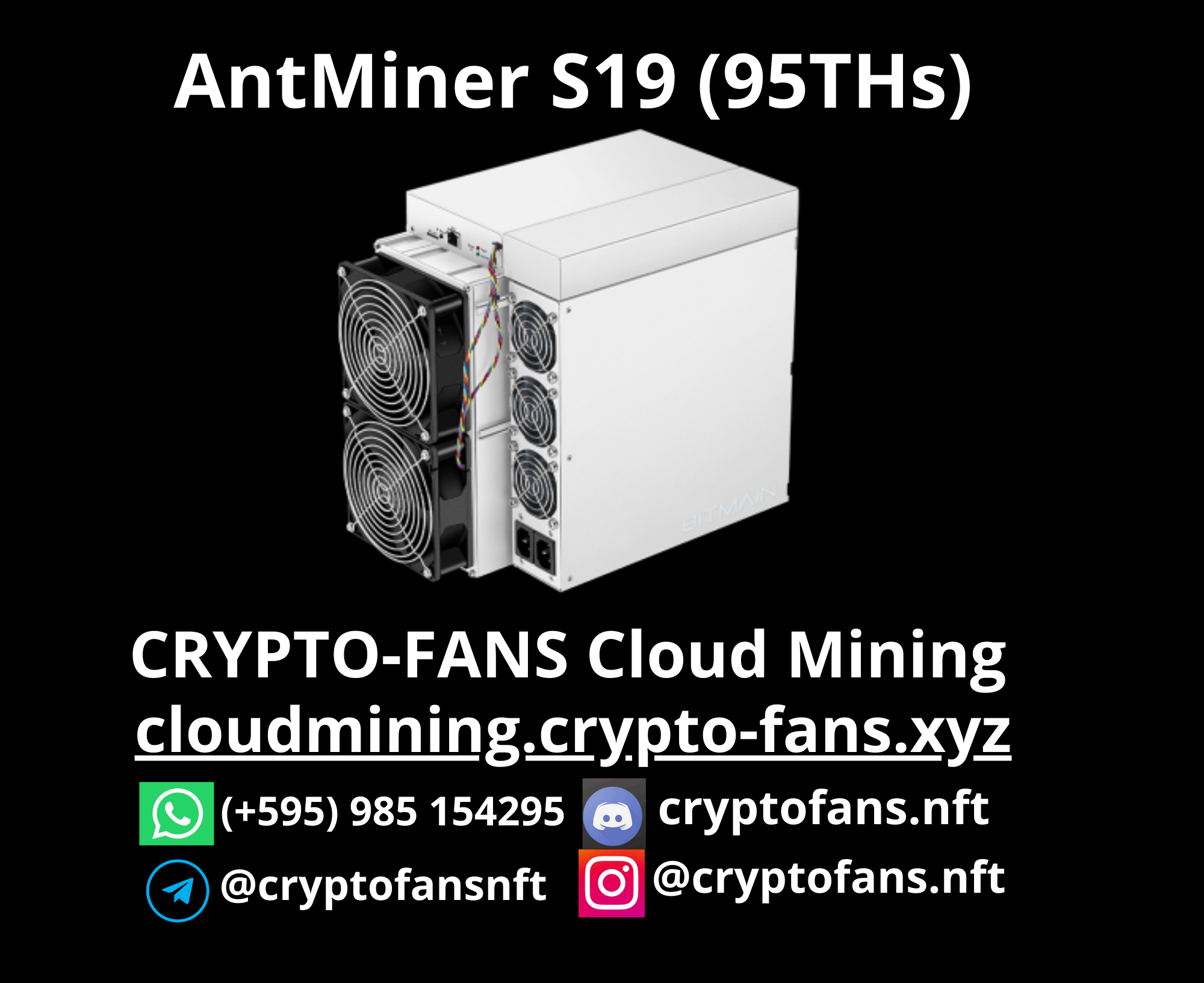 Antminer S19's (95Th) tokenized by CRYPTO-FANS Cloud Mining and hosted in Paraguay with 100% Green and Ultra Low Cost per KWh. Holders Receive theirs Dividends Automatically and Publicly On-Chain. Website Link: https://cloudmining.crypto-fans.xyz Payments Tracking https://cloudmining.crypto-fans.xyz/payments Antminer S19 (95Th), tokenizado por CRYPTO-FANS Cloud Mining y alojado en Paraguay con un costo ultra bajo de 100% de energía verde por kWh. Los titulares reciben automáticamente y públicamente sus dividendos en la cadena. Enlace del sitio web: https://cloudmining.crypto-fans.xyz Seguimiento de pagos https://cloudmining.crypto-fans.xyz/payments. Antminer S19(95Th),由CRYPTO-FANS Cloud Mining 代币化,托管在巴拉圭,每千瓦时能源成本超低且100%绿色。持有者自动且公开在区块链上收到他们的股息。网站链接:https://cloudmining.crypto-fans.xyz 付款追踪 https://cloudmining.crypto-fans.xyz/payments 。